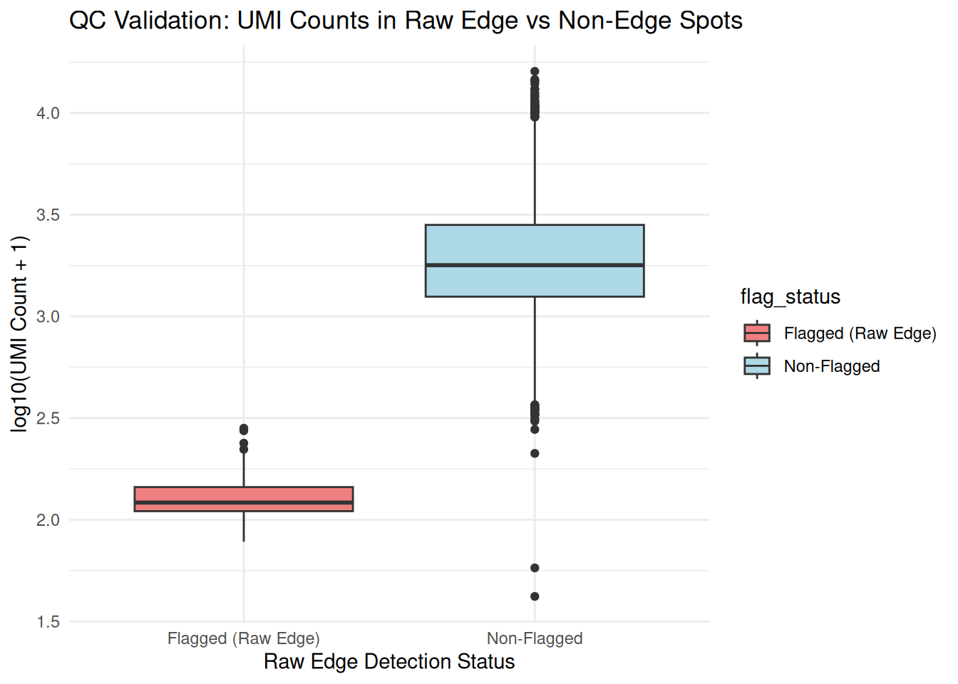 title = "QC Validation: UMI Counts in Raw Edge vs Non-Edge Spots",